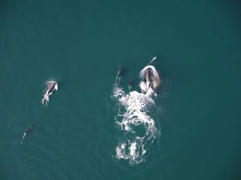 Keith Holmes, drone pilot, geographer and fellow researcher with Hakai Institute, first spotted the dolphin-orca interactions.