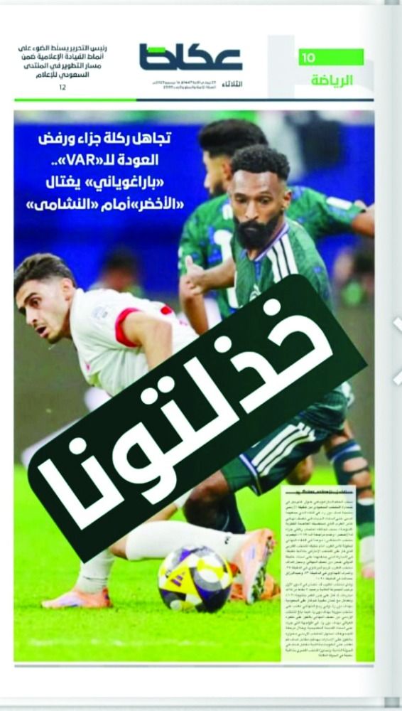 بخط بارز وبكلمة واحدة عنونت صحيفة عكاظ السعودية صفحتها الأولى الرياضية قائلة" خذلتونا" مشيرة إلى أن الحكم البارغوياني خوان غبراييل قد تسبب في خسارة المنتخب السعودي من شقيقه الأردني بنتيجة هدف دون ردّ، بسبب تجاهله احتساب ركلتِي جزاء للأخضر وعدم مراجعة الـ«VAR»، ليضرب منتخب النشامى موعداً في اللقاء النهائي لبطولة كأس العرب أمام شقيقه المنتخب المغربي الذي فاز على المنتخب الإماراتي بثلاثية نظيفة.