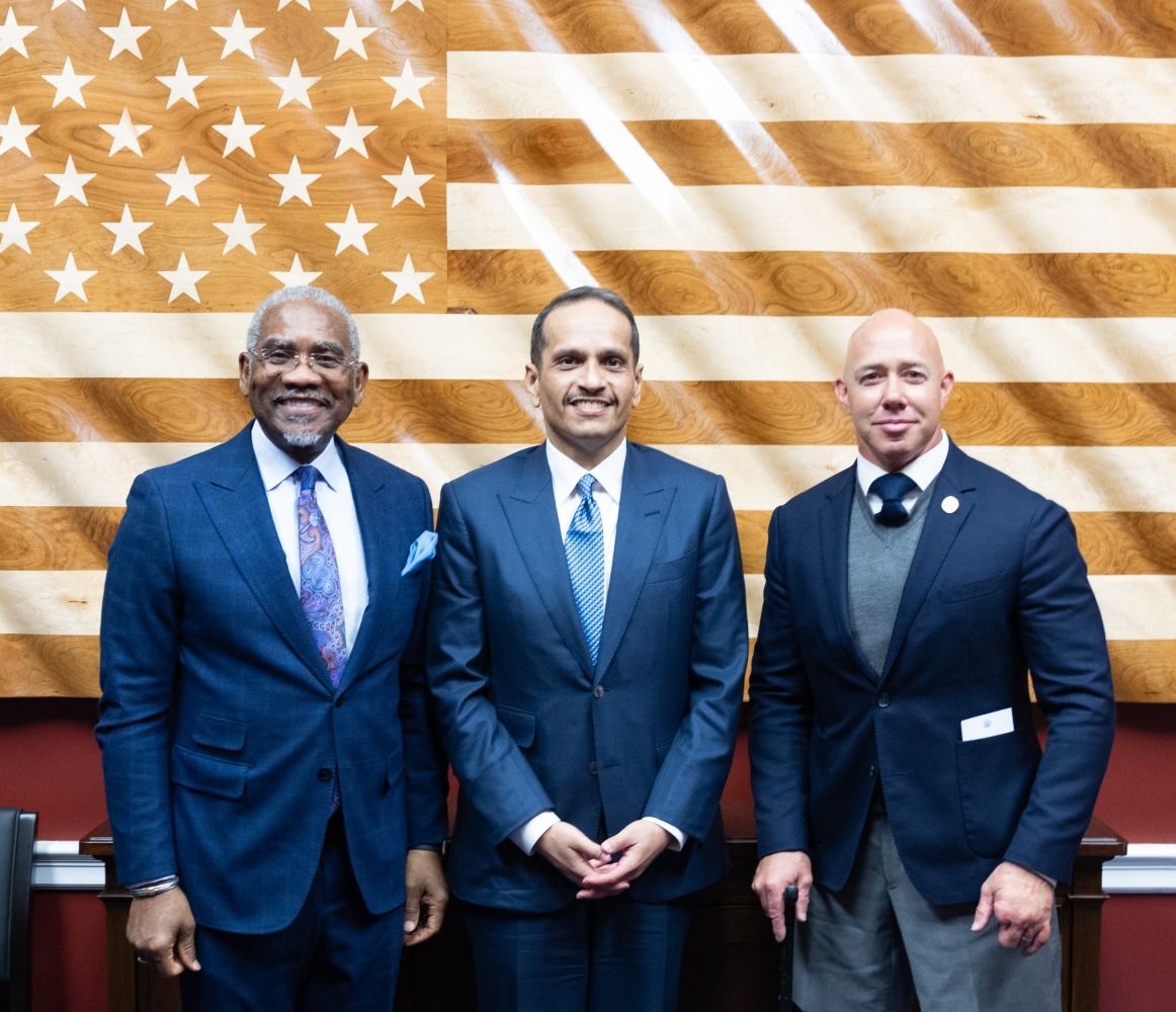 اجتمع معالي الشيخ محمد بن عبدالرحمن بن جاسم آل ثاني رئيس مجلس الوزراء وزير الخارجية، في واشنطن اليوم، مع سعادة السيد برايان ماست رئيس لجنة الشؤون الخارجية بمجلس النواب في الولايات المتحدة الأمريكية الصديقة، وسعادة السيد غريغوري ميكس عضو اللجنة.