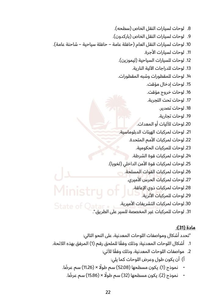 وتضمنت المادة الأولى من القرار استبدال نصـوص الـمـواد (30)، (31)، (39) مـن اللائحة التنفيذية لقانون المرور المشار إليها، النصوص التالية: