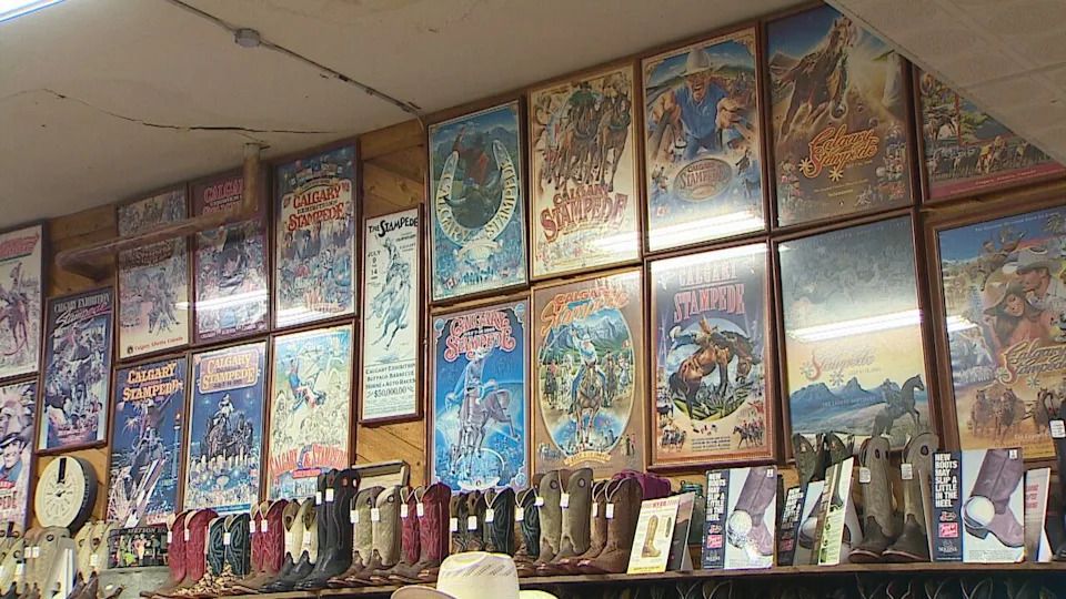 At Western Outdoor in Kalispell, Mont., Calgary Stampede posters dating back to 1972 line the walls. Pirrie says Canadians love seeing the posters, pointing out which events they attended and faces they recognize.