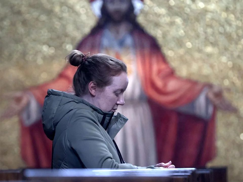 Worshippers at St. Mary’s Cathedral mourn the passing of Pope Francis on April 21.
