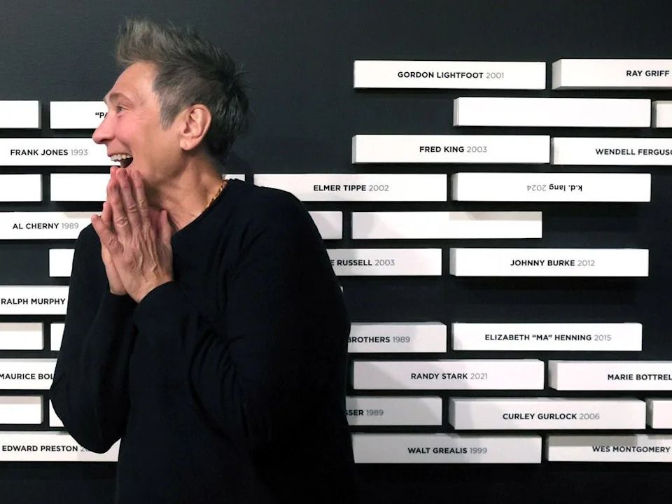 Country music icon KD lang laughs during the plaque ceremony on May 21 for her induction into the Canadian Country Music Hall of Fame. As always, the singer showed her offbeat side by placing her plaque upside down.