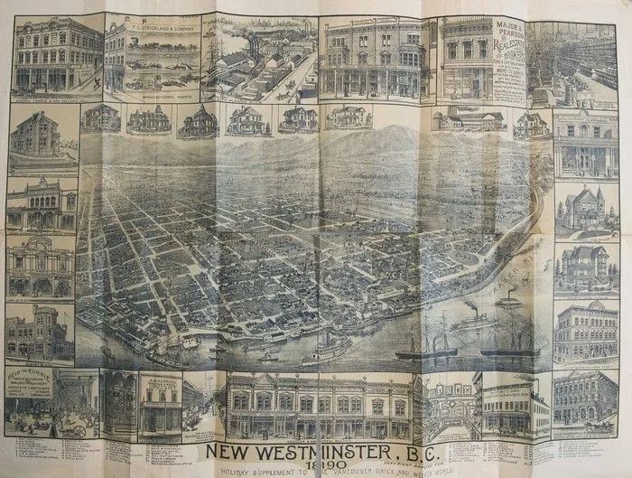 A “bird’s eye view” map of New Westminster from a Dec., 1889 “holiday edition” of the Vancouver World is among the historic documents that used to belong to Francis Carter Cotton, the owner of Vancouver’s first newspaper, the News-Advertiser, Port Coquitlam August 11 2015.