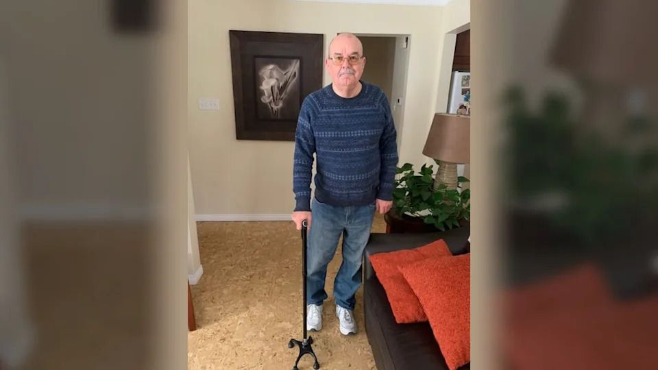 Just shy of two years since his spine surgery in Calgary, Miron Kereluk's health has improved significantly. He has progressed from mostly using a walker to now mostly using a cane. (Submitted by Miron Kereluk)