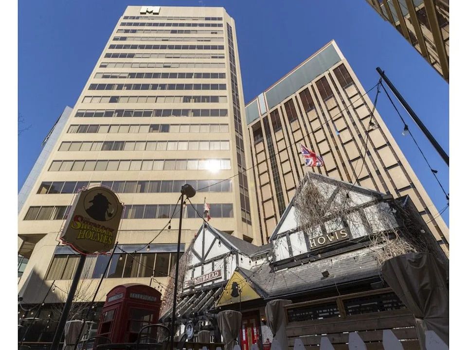 Sherlock Holmes, 10012 101A Ave., with the Phipps-McKinnon Building behind and to he left of it at 10020 101A Ave. on Friday, April 19, 2024, in Edmonton. Greg Southam-Postmedia