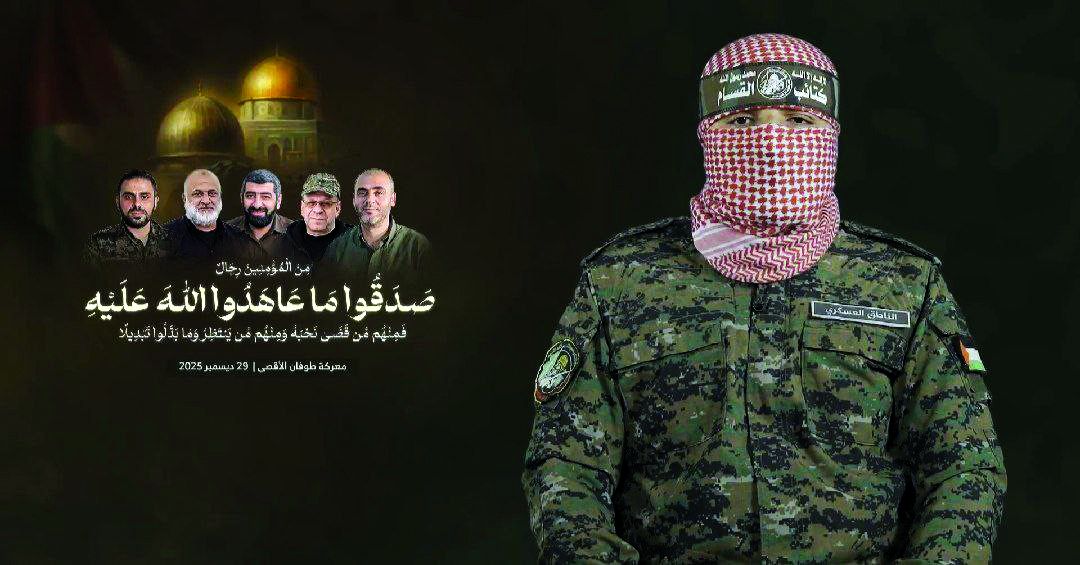وشدد على أن حق المقاومة في الرد على جرائم الاحتلال «حق أصيل ومكفول»، داعيًا جميع المعنيين إلى لجم الاحتلال وإجباره على الالتزام بما تم الاتفاق عليه. وأضاف: «شعبنا يدافع عن نفسه، ولن يتخلى عن سلاحه ما دام الاحتلال قائمًا، ولن يستسلم ولو قاتل بأظافره، وفي رفح ورجالها الأبطال الذين فضّلوا الشهادة على الاستسلام خير شاهد ودليل». وأكد الناطق الجديد أن القسام ماضية على العهد، مضيفًا: «ورثنا عن القائد حذيفة الكحلوت لقبه أبو عبيدة، وورثنا عهدًا أن نواصل المسير».