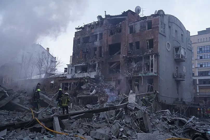 Emergency services personnel work to extinguish a fire following a Russian missile attack in Kharkiv, 2 January, 2026 - AP Photo