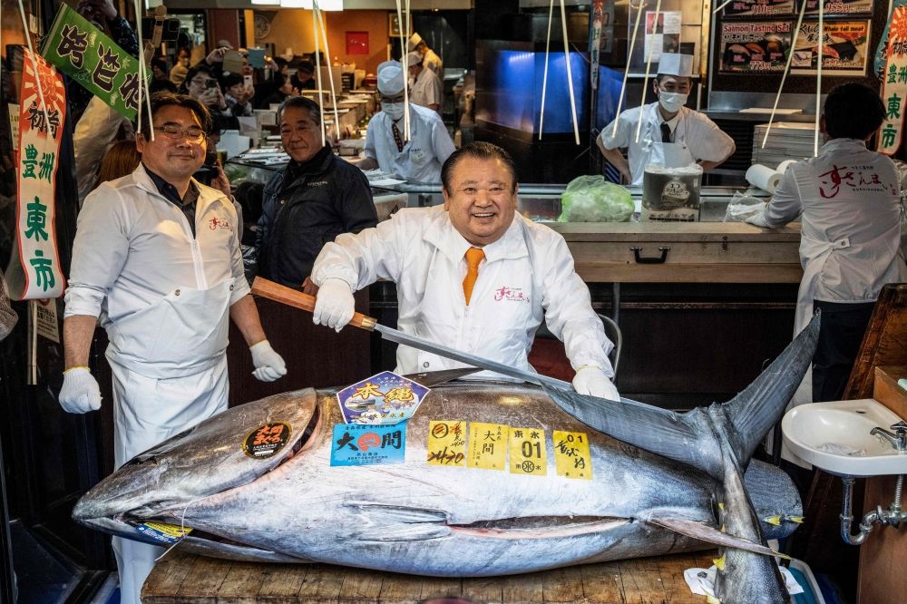 باعت اليابان تونة زعنفة زرقاء بسعر قياسي بلغ 510.3 مليون ين ما يعادل حوالي 3.25 مليون دولار خلال أول مزايدة للعام الجديد على سمك التونة في سوق تويوسو في طوكيو.