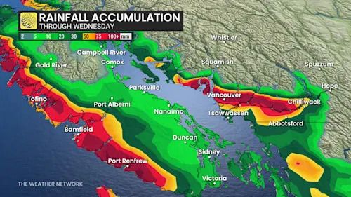On Wednesday, another system moving south from the Gulf of Alaska will bring 10-20 mm of rain to the Lower Mainland.