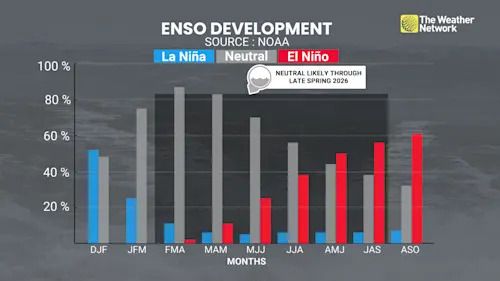 Forecasters with the U.S. Climate Prediction Center (CPC) are confident that La Niña will fade rapidly heading into the spring months, with odds greater than 80 per cent that we’ll slip into ENSO-Neutral conditions between February and April.