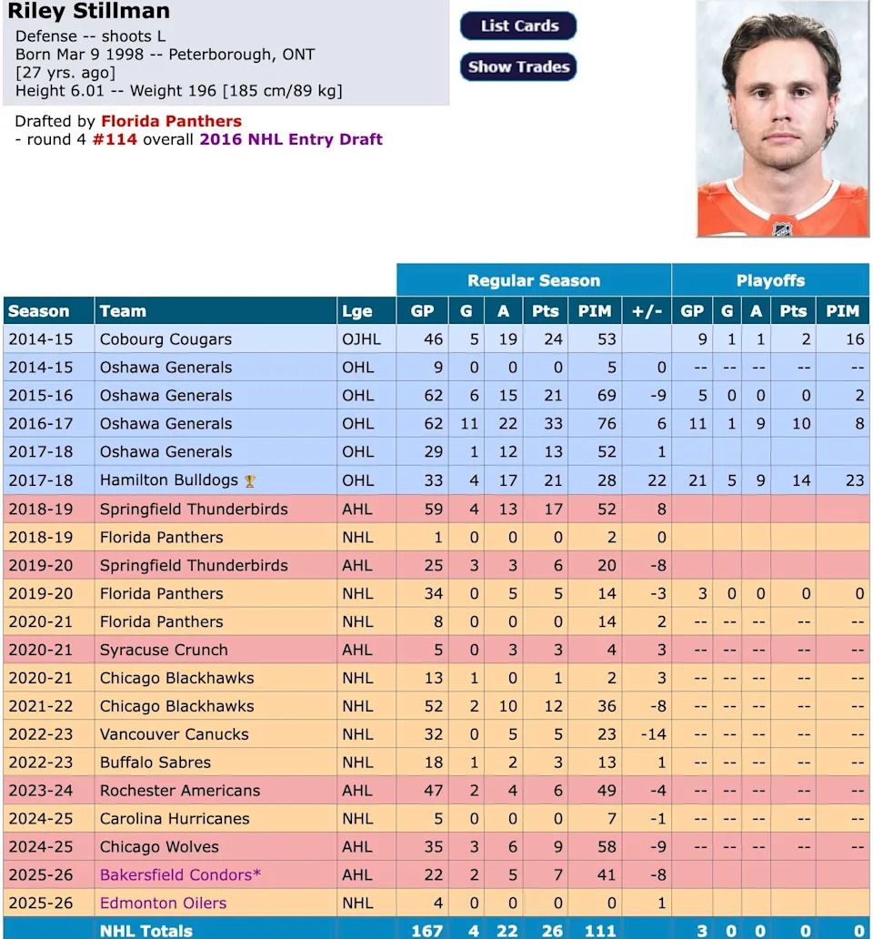 1. Stillman played safe hockey for the Oilers, but with him returning to Bakersfield there’s hope that Jake Walman, 29, now skating with the Oilers at practice, will be ready for NHL duty pronto.