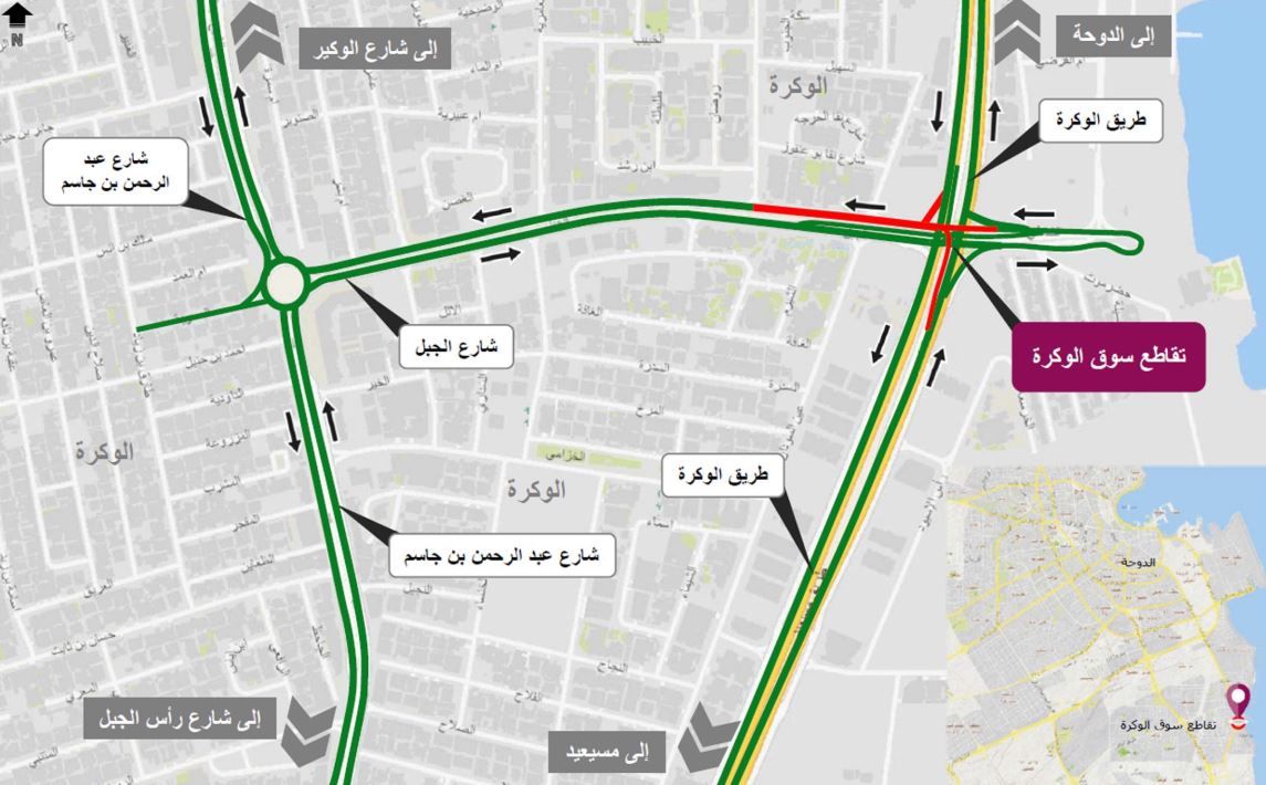 وخلال فترة الإغلاق، أهابت "أشغال" بجميع مستخدمي الطريق القادمين إلى تقاطع سوق الوكرة من الدوحة والوكرة وشارع الجبل، استخدام الطرق البديله للوصول إلى وجهاتهم، كما هو موضح بالخريطة المرفقة.
