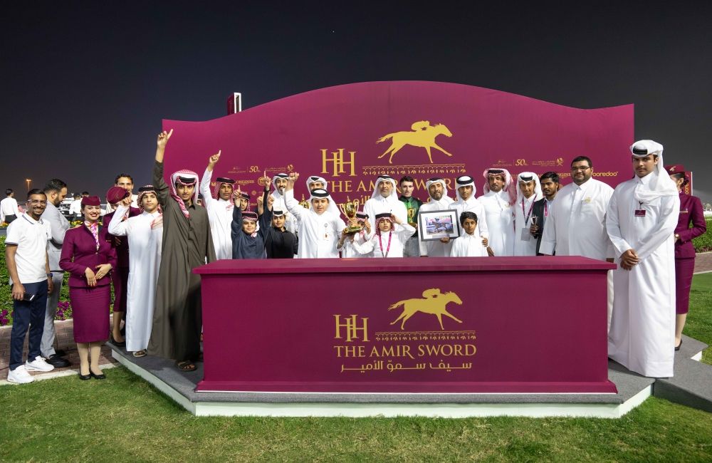 عقب انتهاء الشوط، قام السيد أحمد أمان الله الشيباني، نائب الرئيس التنفيذي لنادي قطر للسباق والفروسية، بتتويج الفائزين بكأس البطولة الرملية للخيل المهجنة الأصيلة.