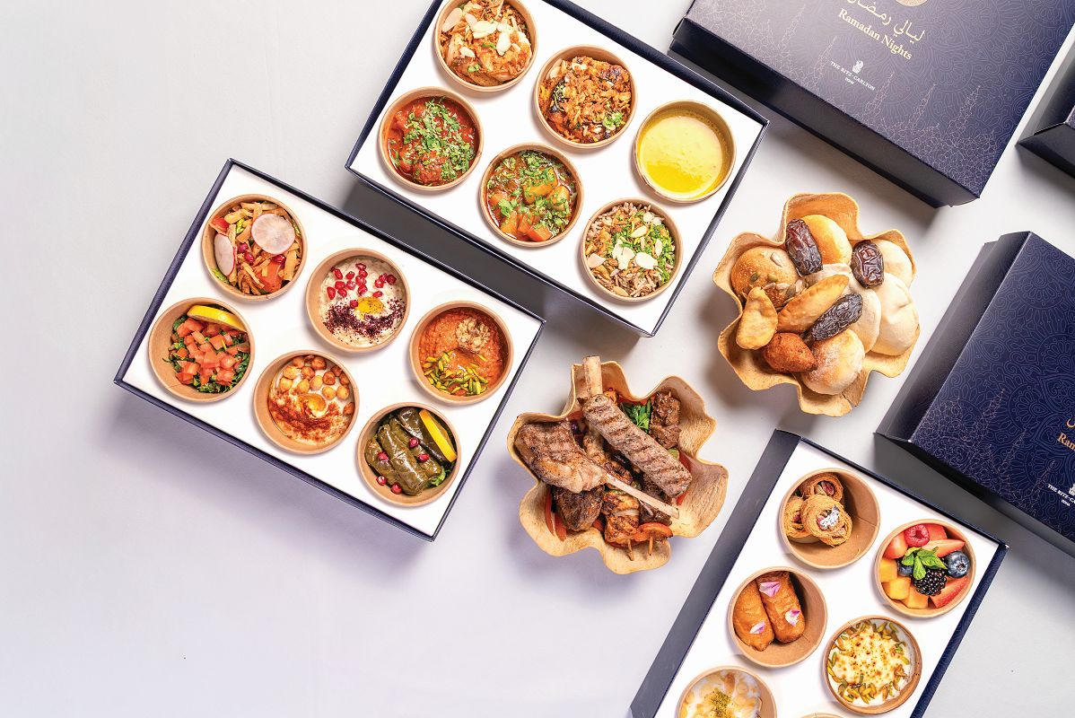 ولمن يفضلون الاستمتاع بأجواء رمضان في راحة منازلهم، يقدم الفندق صندوق الإفطار الجاهز المصمم بعناية ليشارك ضيافة الريتز-كارلتون الأسطورية وتذوق إبداعات فريق الطهي الاستثنائي لدى الفندق خلال هذا الشهر المبارك. تقدم هذه التجربة وليمة متكاملة وفرصة لصنع ذكريات لا تنسى أثناء الاستمتاع بمجموعة من النكهات التقليدية الأصيلة، بما في ذلك طبق الصيادية الشهير، وكفتة داوود باشا الغنية بالنكهات، وحلوى أم علي.