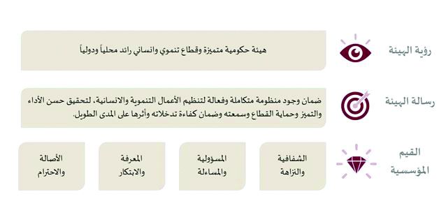 رؤية الهيئة: هيئة حكومية متميزة وقطاع تنموي وإنساني رائد محلياً ودولياً.