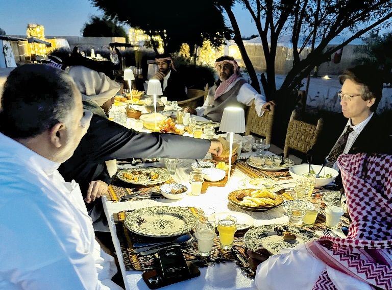 لقد نلتُ شرف الدعوة مرتين من قبل حضرة صاحب السمو أمير البلاد المفدى لحضور مأدبة إفطار جماعية للدبلوماسيين. كانت الحفاوة والضيافة استثنائيتين، كما أن مشاعر الزمالة والألفة كانت لا تُنسى. وقد أتيحت لي أيضًا فرصة تجربة لحم الإبل لأول مرة، وهي تجربة لا يمكنني الحصول عليها بسهولة في اليابان؛ لقد كانت نافذة رائعة للإطلال على الثقافة القطرية وتقاليد الطهي الأصيلة.