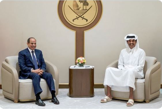 بحث حضرة صاحب السمو الشيخ تميم بن حمد آل ثاني أمير البلاد المفدى، مع أخيه فخامة الرئيس عبدالفتاح السيسي رئيس جمهورية مصر العربية الشقيقة، في اجتماعٍ عقد بالصالة الأميرية بمطار حمد الدولي، آخر التطورات في المنطقة في ظل استمرار العدوان الإيراني على قطر وعدد من دول المنطقة.