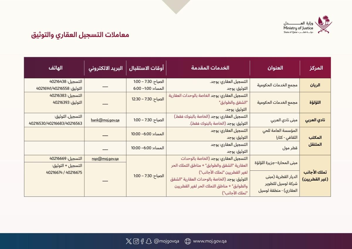 - المكتب المتنقل (الفترة المسائية) من 18:00 إلى 22:00 في قطر مول، كتارا.