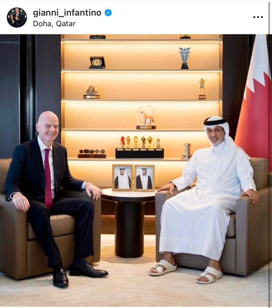 أعرب جياني انفاتينو رئيس الاتحاد الدولي لكرة القدم عن سعادته بالتواجد في الدوحة ولقاء سعادة الشيخ حمد بن خليفة بن أحمد آل ثاني، وزير الرياضة والشباب وعضو مجلس FIFA.