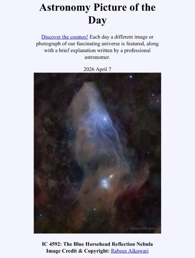 ويُعد هذا الأرشيف، الممتد منذ عام 1995، من أبرز المنصات العالمية المتخصصة في نشر الصور الفلكية، حيث يعرض يوميًا صورًا علمية مميزة تشمل لقطات من مهمات ناسا المختلفة مثل مهمة “أرتميس”، إلى جانب اكتشافات المراصد العالمية.
