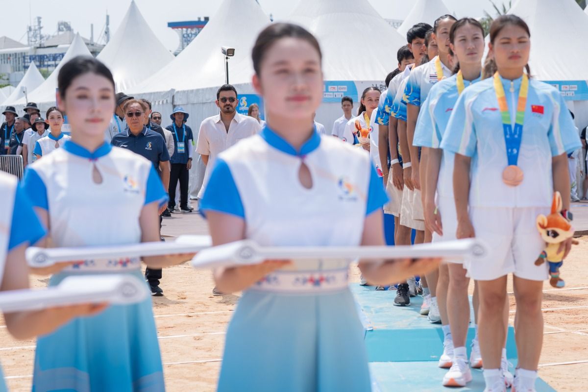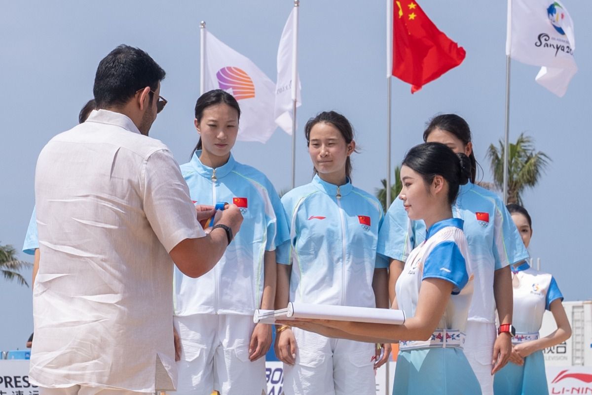 توّج سعادة الشيخ جوعان بن حمد آل ثاني، رئيس المجلس الأولمبي الآسيوي، الفائزات بالمراكز الثلاثة الأولى في سباق التتابع 4×60 متر للسيدات، ضمن منافسات دورة الألعاب الآسيوية الشاطئية السادسة "سانيا 2026"، المقامة حاليًا في مدينة سانيا بجمهورية الصين الشعبية.