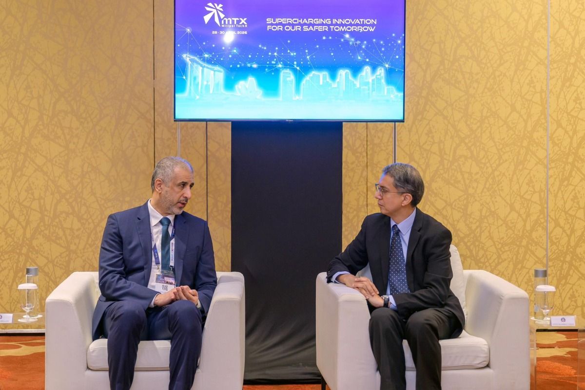 التقى سعادة الشيخ عبدالعزيز بن فيصل بن محمد آل ثاني وزير الدولة للشؤون الداخلية، اليوم، سعادة السيد محمد فيصل إبراهيم وزير شؤون المسلمين بالإنابة ووزير الدولة الأول بوزارة الداخلية في جمهورية سنغافورة الصديقة، وذلك على هامش افتتاح معرض وقمة ميليبول تيك إكس 2026 (Milipol TechX 2026).