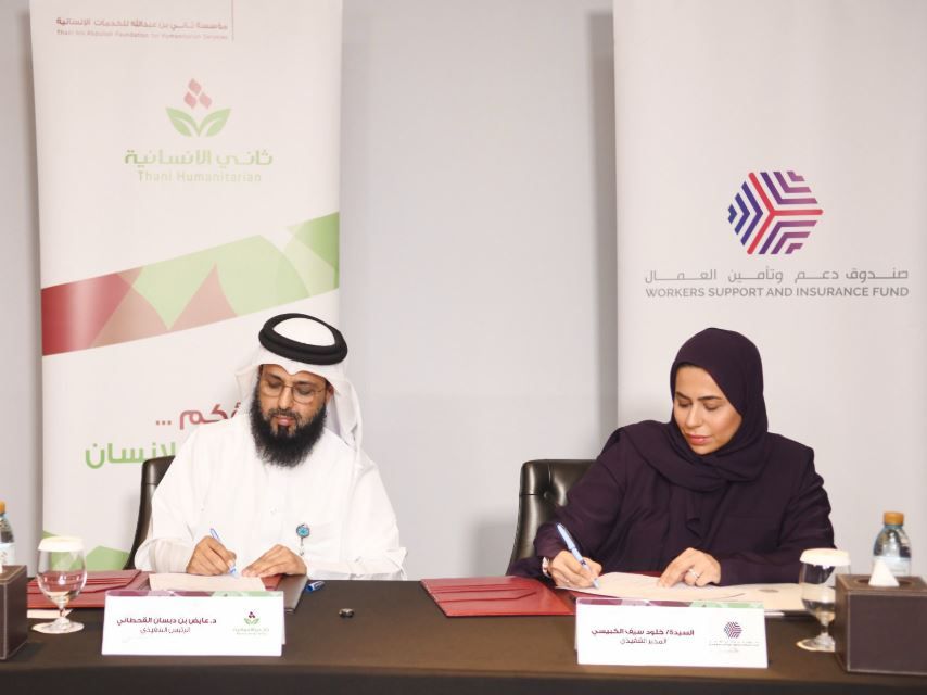 وقع الاتفاقية من جانب المؤسسة الدكتور عايض بن دبسان القحطاني، الرئيس التنفيذي للمؤسسة ،فيما وقّعتها من جانب صندوق دعم وتأمين العمال السيدة خلود سيف عبدالله الكبيسي، المدير التنفيذي للصندوق، بحضور عدد من ممثلي الجهتين والشركاء المعنيين.
