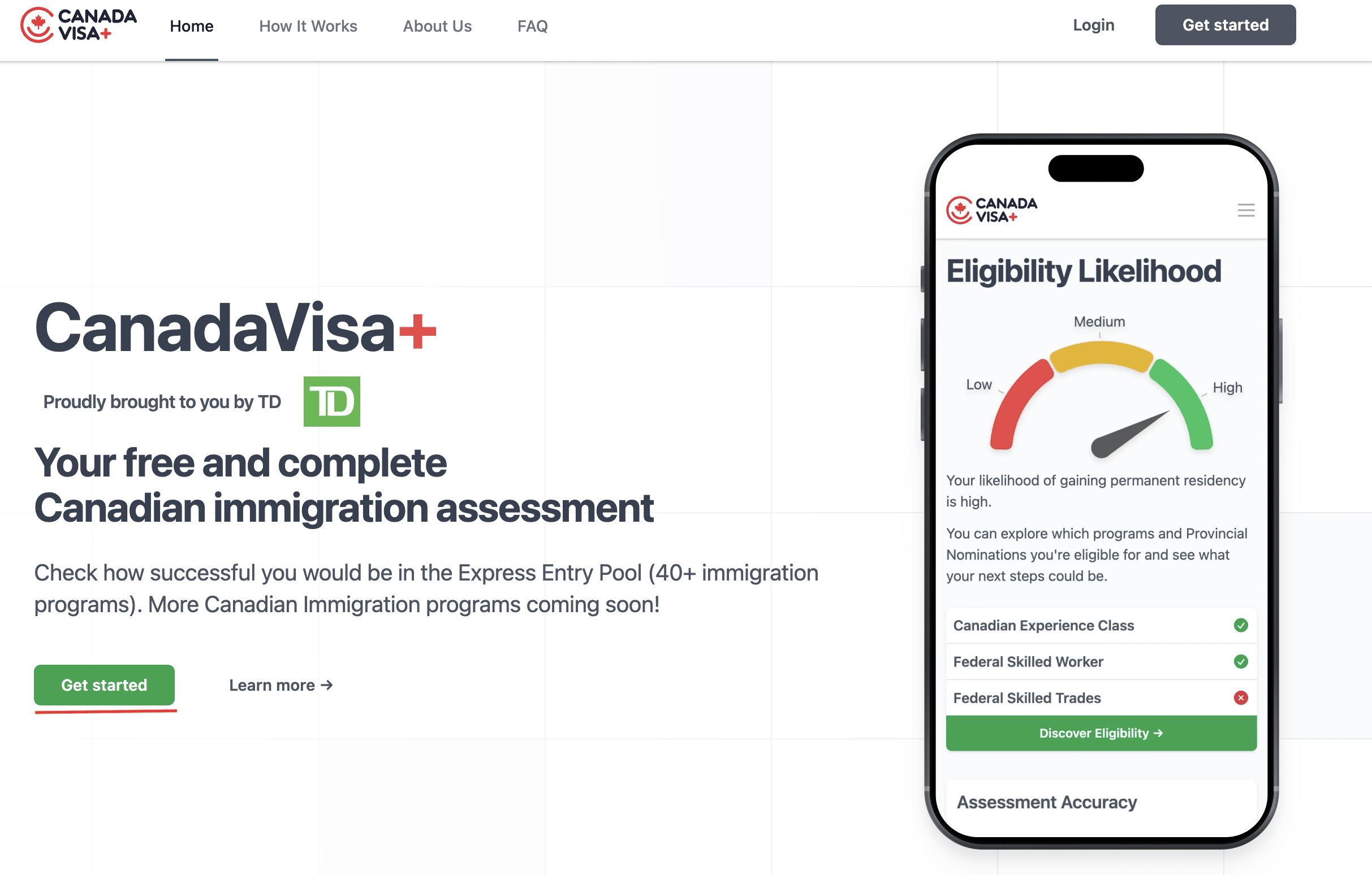يمكنك الوصول إلى CanadaVisa+ عبر أي متصفح ويب، على الحاسوب أو الهاتف المحمول، حيث ستكمل نموذجًا إلكترونيًا للتقييم.
