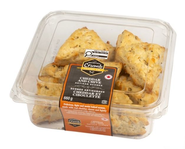 والمنتج هو The Worthy Crumb Cheddar Chive Scones، وتحتوى العبوة على 9 قطع (660 غرام).