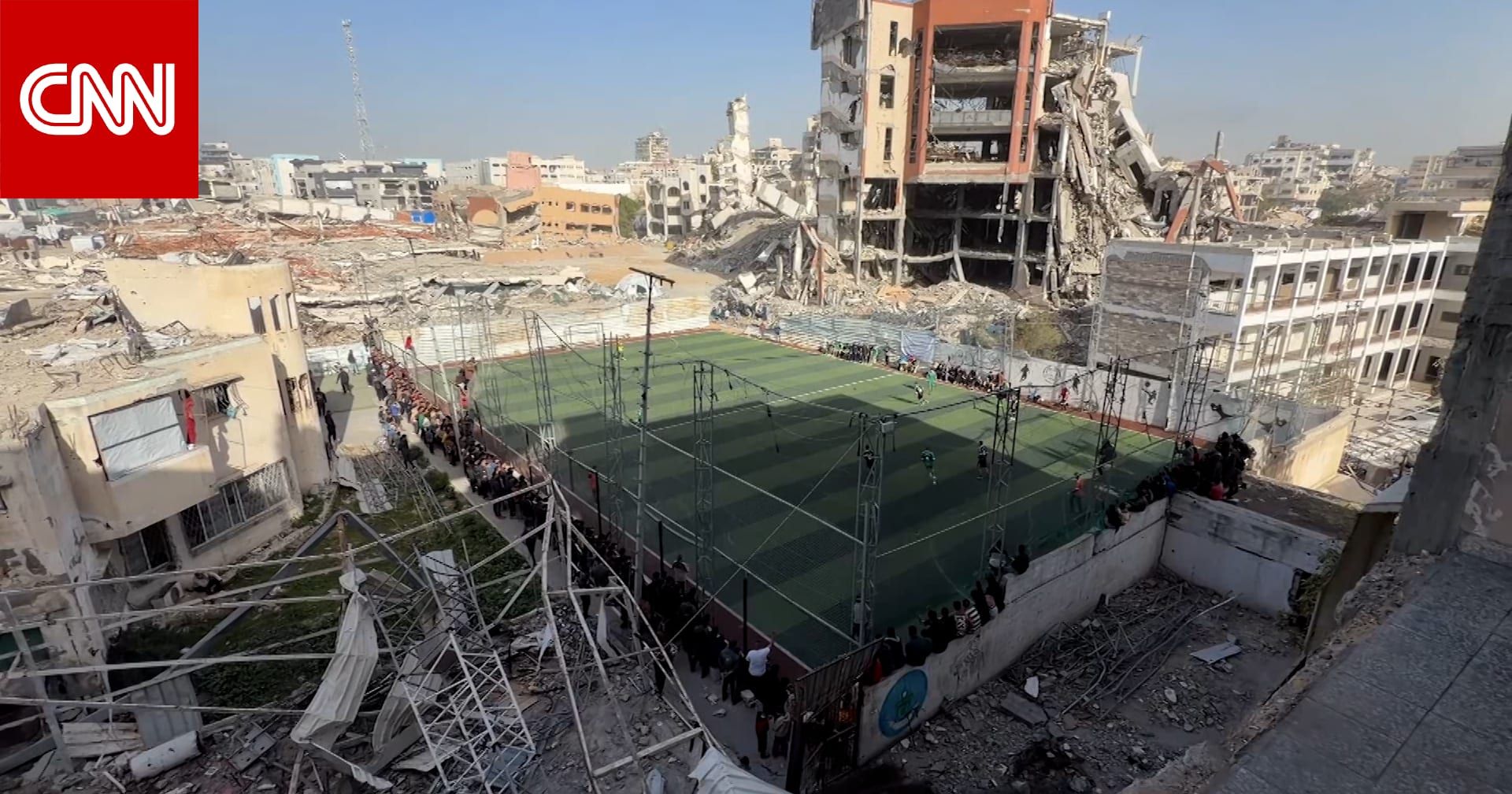 في ملعب شبه مدمر وسط مدينة غزة، أعاد الاتحاد الفلسطيني لكرة القدم والأندية المحلية تأهيل المساحة بإزالة الأنقاض وإحياء الملعب ليستضيف بطولات ودية.