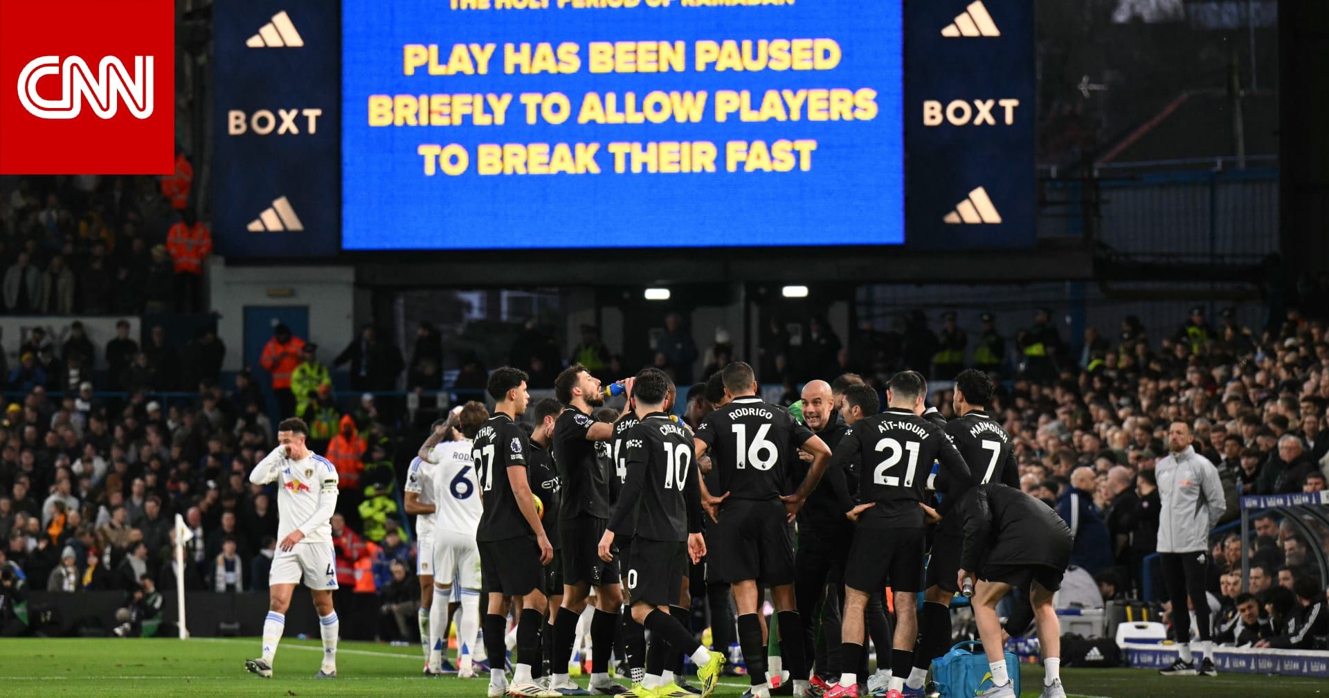 اخبارالعرب 24-كندا:السبت 28 فبراير 2026 03:13 مساءً دبي، الإمارات العربية المتحدة (CNN)-- توقفت مباراة بين نادي مانشستر سيتي ونظيره ليدز يونايتد، في ملعب "إيلاند رود"، السبت، ضمن مباريات الجولة الـ28 من الدوري الإنجليزي الممتاز (البريميرليغ)، وذلك حتى يكسر اللاعبون المسلمون صيامهم.