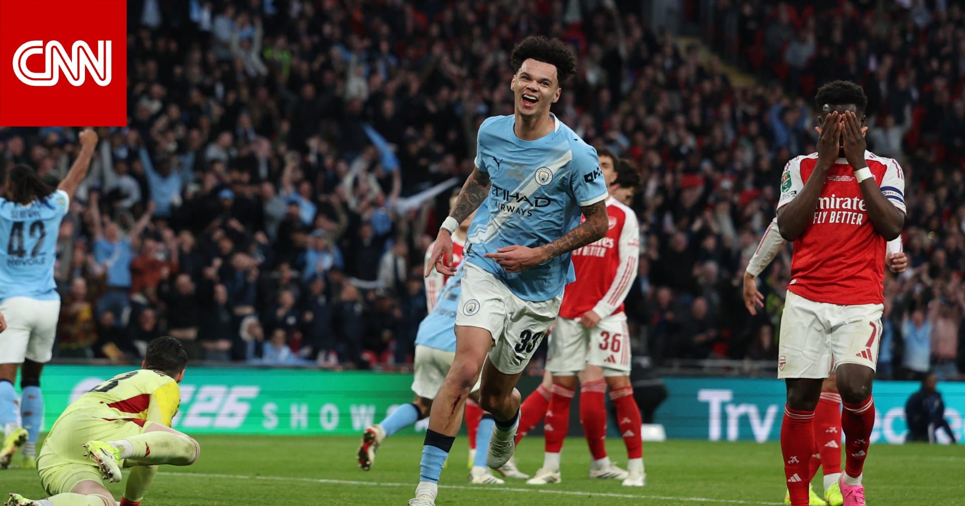اخبارالعرب 24-كندا:الأحد 22 مارس 2026 02:49 مساءً دبي، الإمارات العربية المتحدة (CNN)-- فاز نادي مانشستر سيتي بلقب كأس رابطة الأندية الإنجليزية المحترفة 2026، بعد تغلبه على نادي أرسنال في النهائي بهدفين مقابل لا شيء، في ملعب ويمبلي، الأحد.