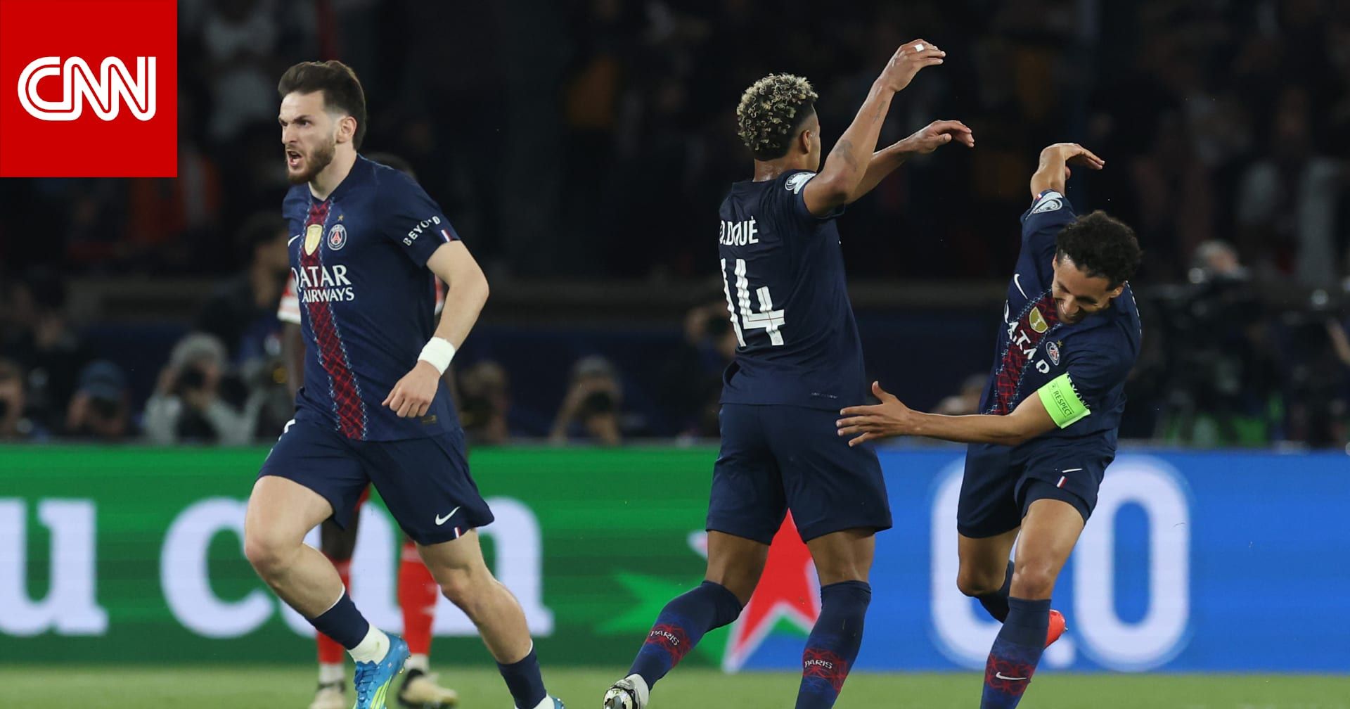 وسجّل لنادي باريس سان جيرمان كل من عثمان ديمبيلي (ثنائية) وكفاراتسخيليا (ثنائية) وجواو نفيز، عند الدقائق 24 و33 و45+ و56 و59.