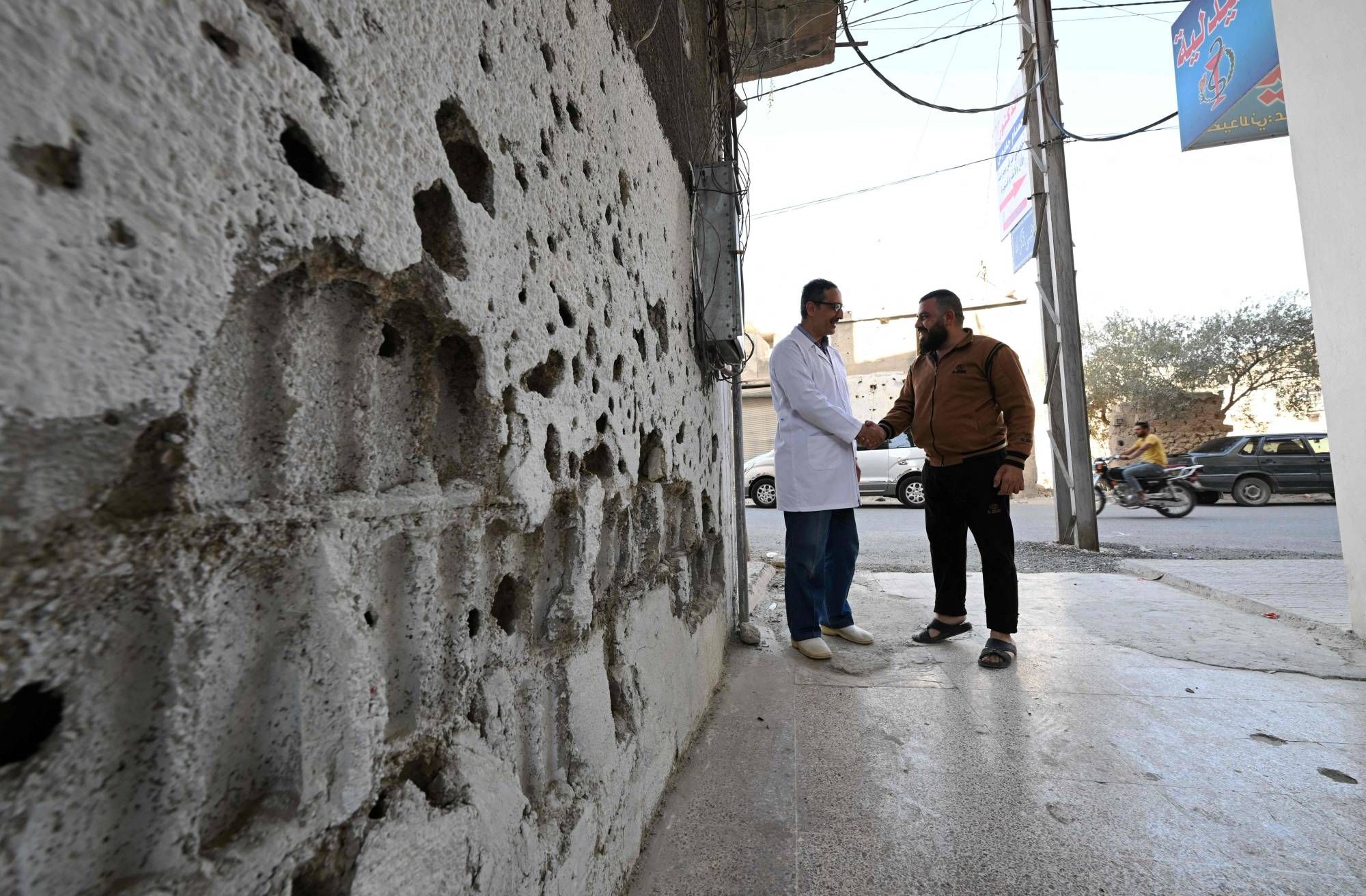 في المدينة الوحيدة التي أخلاها الحكم السابق تماماً من سكانها في ذروة سنوات النزاع السوري، يتفقد شوربه (31 عاماً) إحدى رسوماته على جدار مهدّم في أحد الأحياء. تجسّد «سمفونية الثورة» كما سمّاها، كيف تحوّلت التحركات السلمية إلى نزاع مسلح تعدّدت أطرافه. وتظهر في الرسم فتاة برداء أبيض تعزف الكمان، وخلفها جندي يصوّب بندقيته تجاهها، ومن خلفه مقاتل يلاحقه ويقع بدوره تحت مرمى بندقية مقاتل من تنظيم «داعش».