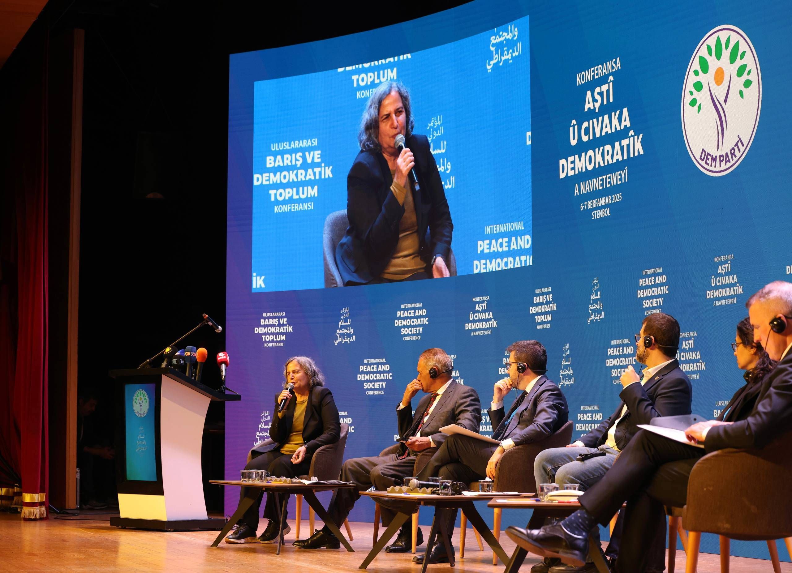إشادة بدور «أوجلان»وشارك في المؤتمر، الذي عقد في مدينة إسطنبول، سياسيون وأكاديميون وصحافيون ومدافعون عن حقوق الإنسان وممثلون لبرلمانات 19 دولة من أنحاء العالم، بوصفهم متحدثين أو مراقبين، كما شاركت فيه الرئيسة المشاركة لدائرة الشؤون الخارجية في الإدارة الذاتية الكردية لشمال وشرق سوريا، إلهام أحمد، عبر تقنية «زووم» بعد رفض السلطات التركية السماح لها بالحضور.