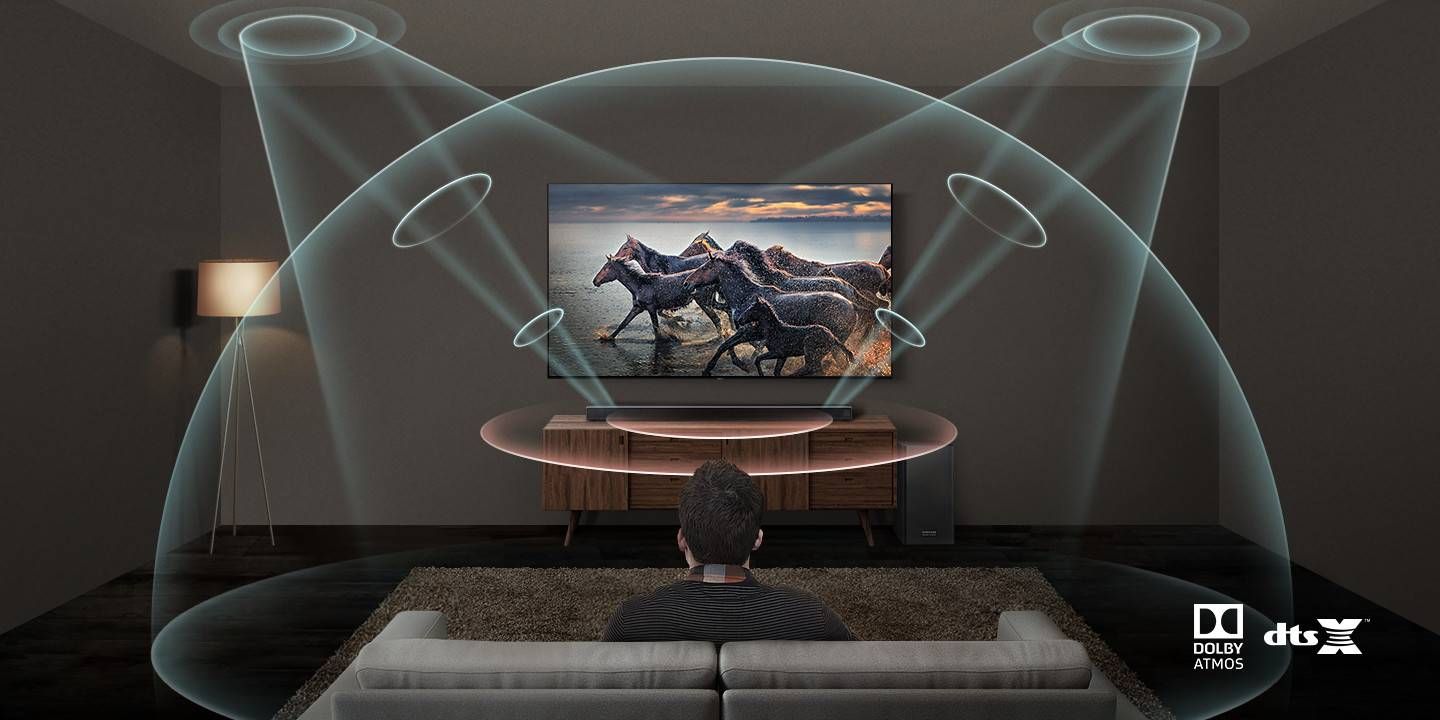 السماعات الأمامية الجانبية والمركزية هي الأساس الذي تُبنى عليه التجربة الصوتية بالكامل، حيث تتعامل مع معظم الموسيقى والمؤثرات والحوار.