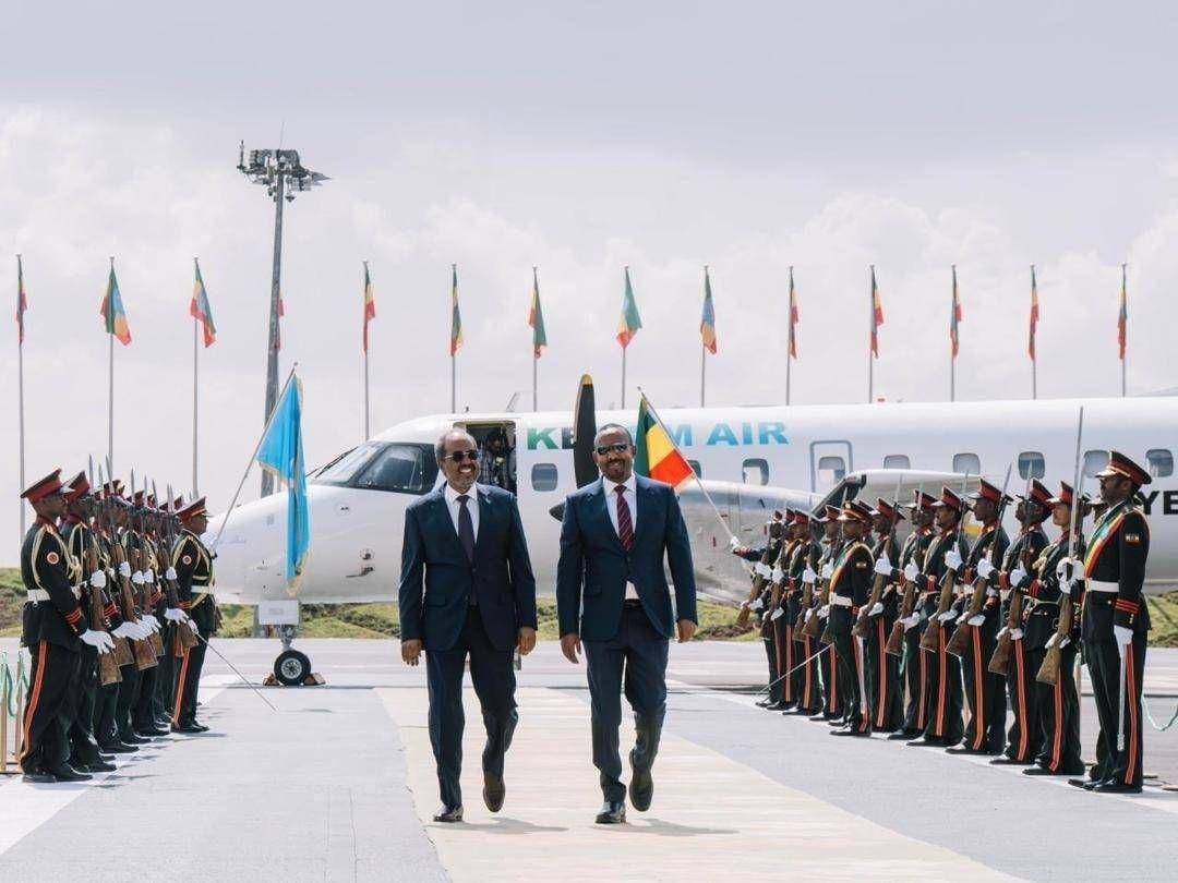 وأفادت «وكالة الأنباء الإثيوبية»، الجمعة، بأن رئيس الوزراء الإثيوبي أجرى «محادثات استراتيجية» مع الرئيس الصومالي، الذي وصل إلى إثيوبيا في زيارة عمل ليوم واحد تهدف إلى تعزيز التعاون الثنائي بين البلدين.