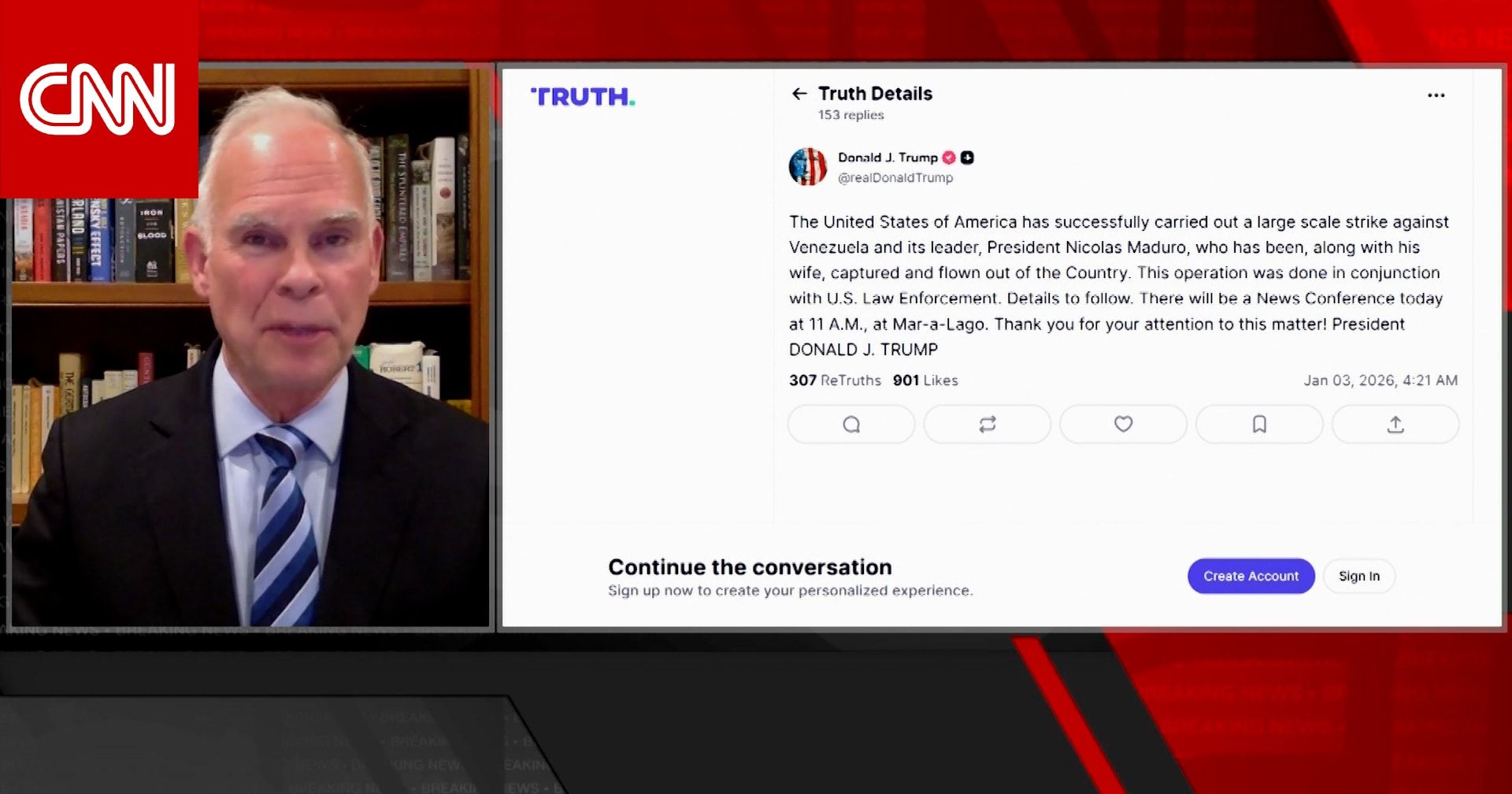 مضيفًا "إذا صحت هذه الأنباء، فإن العملية كانت دقيقة للغاية مقارنة بعملية اعتقال نورييغا في بنما عام 1989".