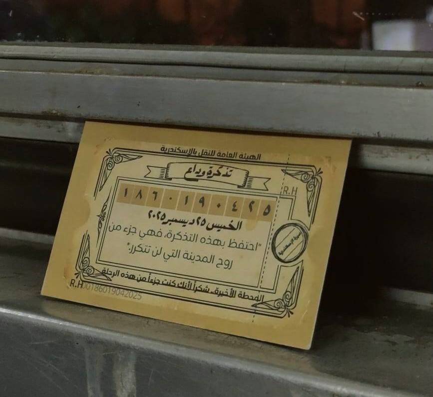 ويلفت زكي إلى قيام «سيرة الإسكندرية» بتصميم تذكرة ركوب ترام تذكارية، تحمل اسم وشعار وختم المبادرة، هي بمثابة تذكرة وداع للترام، تتضمن رسالة شكر مضمونها: «المحطة الأخيرة... شكراً لأنك كنت جزءاً من هذه الرحلة»، مبيناً أن التصميم انتشر بشكل كبير بين رواد منصات التواصل الاجتماعي.