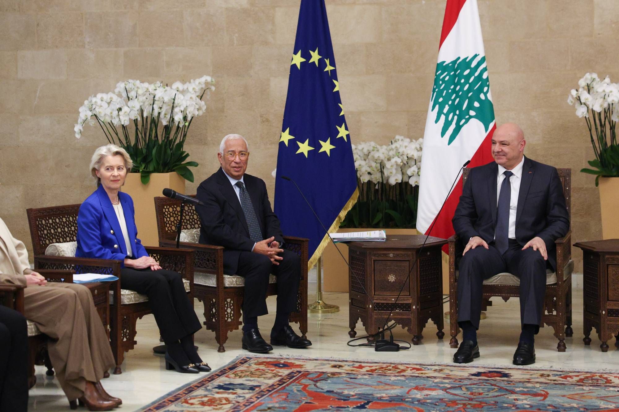 لقاء مع سلام وترحيب بالإصلاحاتواجتمع الوفد الأوروبي مع رئيس مجلس الوزراء نواف سلام، الذي كان في استقباله في مطار رفيق الحريري الدولي، وعرض خلال اللقاء الإصلاحات التي قامت بها الحكومة منذ تشكيلها، وآخرها إعداد مشروع قانون الانتظام المالي واستعادة الودائع، إضافة إلى التقدّم الحاصل في بسط سلطة الدولة على كامل الأراضي اللبنانية. كما تناول البحث دعم الاتحاد الأوروبي للجيش اللبناني، وجرى التطرّق إلى مرحلة ما بعد «يونيفيل».