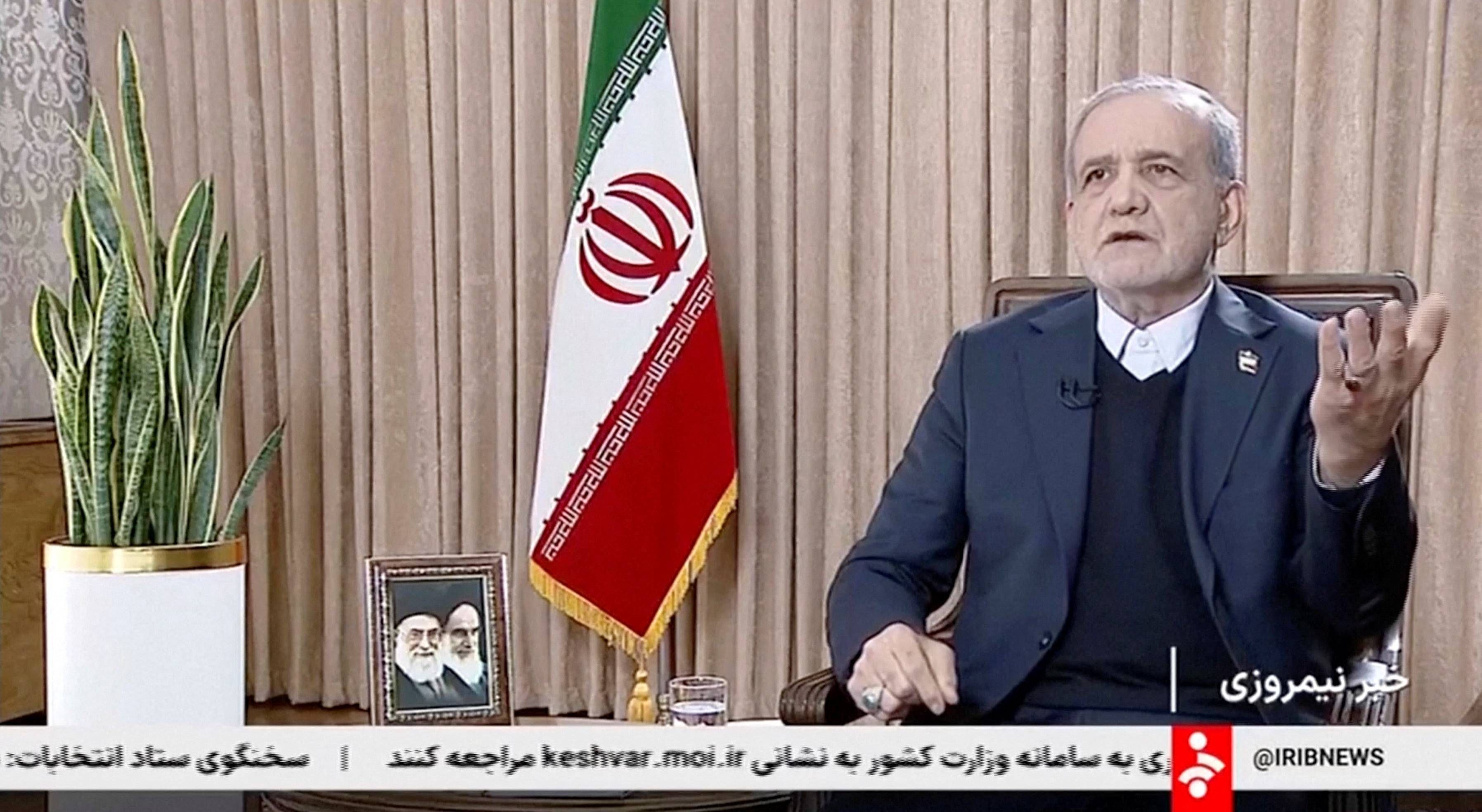 وقال بزشكيان في مقابلة بثها التلفزيون الرسمي إن «الاحتجاج حق»، لكنه شدد على «عدم السماح» لمجموعة من مثيري الشغب بـ«تدمير المجتمع بأسره». مضيفاً أن أعداء إيران استقدموا «إرهابيين... أضرموا النيران في مساجد، وهاجموا البنوك والممتلكات العامة».