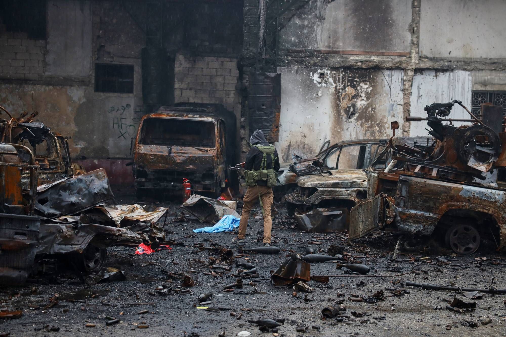 شاهد مراسل «وكالة الصحافة الفرنسية»، الثلاثاء، القوات الحكومية تستقدم تعزيزات عسكرية إلى منطقة دير حافر.
