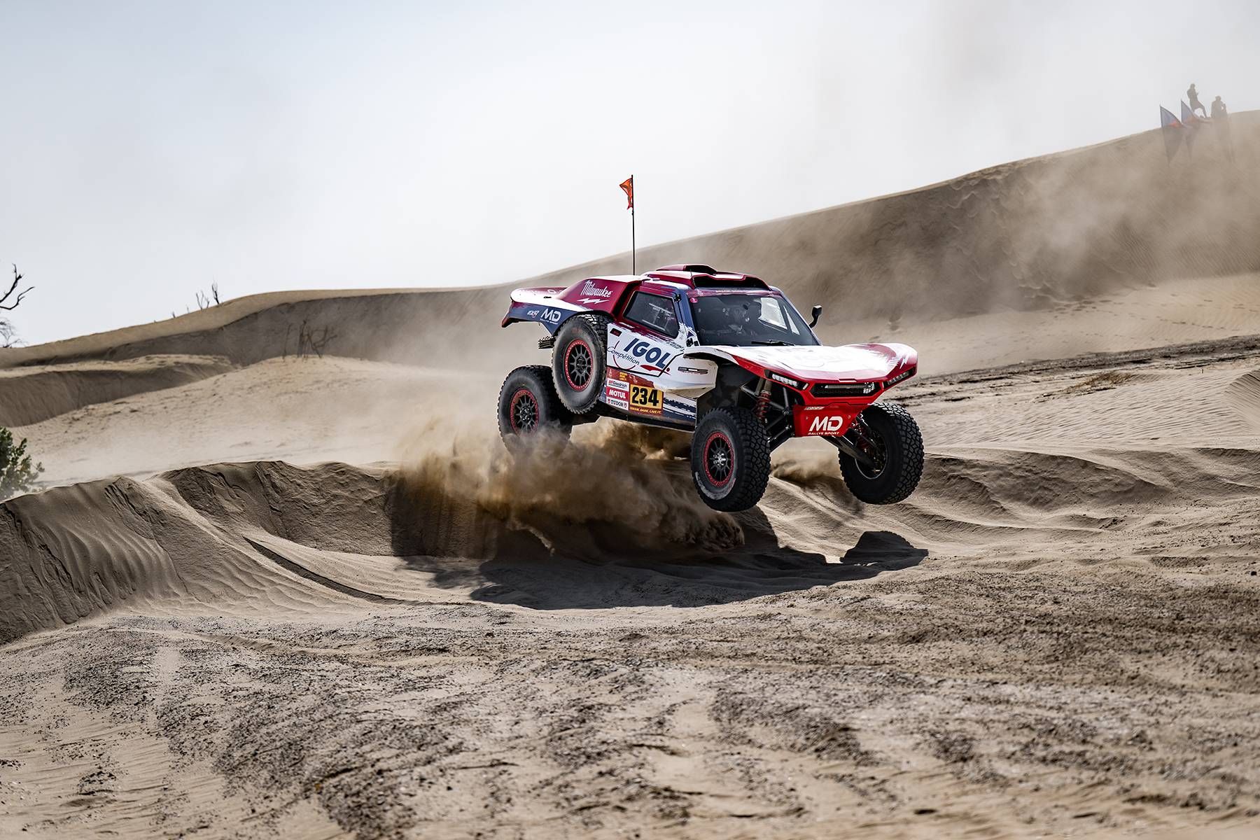 ونجح الأميركي بروك هيغير سائق «آر زد آر فاكتوري» في اعتلاء قمة المرحلة لفئة المركبات الصحراوية الخفيفة «إس إس في»، بعد وصوله خط النهاية خلال 5 ساعات و18 دقيقة و14 ثانية، متقدماً بفارق دقيقة واحدة و15 ثانية عن زميله الفرنسي كزافيي دي سولتريه، فيما حلّ الأرجنتيني خارمياس غونزاليس فيريولي، سائق فريق «كان إم فاكتوري أميركا اللاتينية (LATAM)» ثالثاً، بفارق 5 دقائق و9 ثوانٍ عن المتصدر.