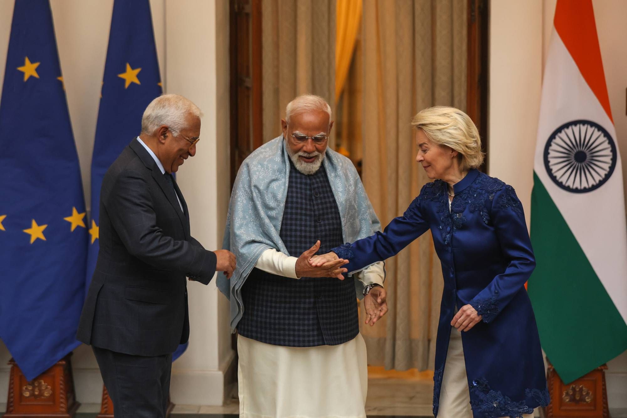 وينظر الاتحاد الأوروبي إلى الهند، الدولة الأكثر سكاناً في العالم، على أنها سوق محورية للمستقبل. وقالت فون دير لاين في بيان: «أوروبا والهند تصنعان التاريخ اليوم»، وذلك بعد يوم من تكريمها وكوستا بوصفهما ضيفي شرف في عرض يوم الجمهورية الهندية. وأضافت: «لقد أنشأنا منطقة تجارة حرة تضم ملياري شخص، وسيستفيد منها الطرفان».
