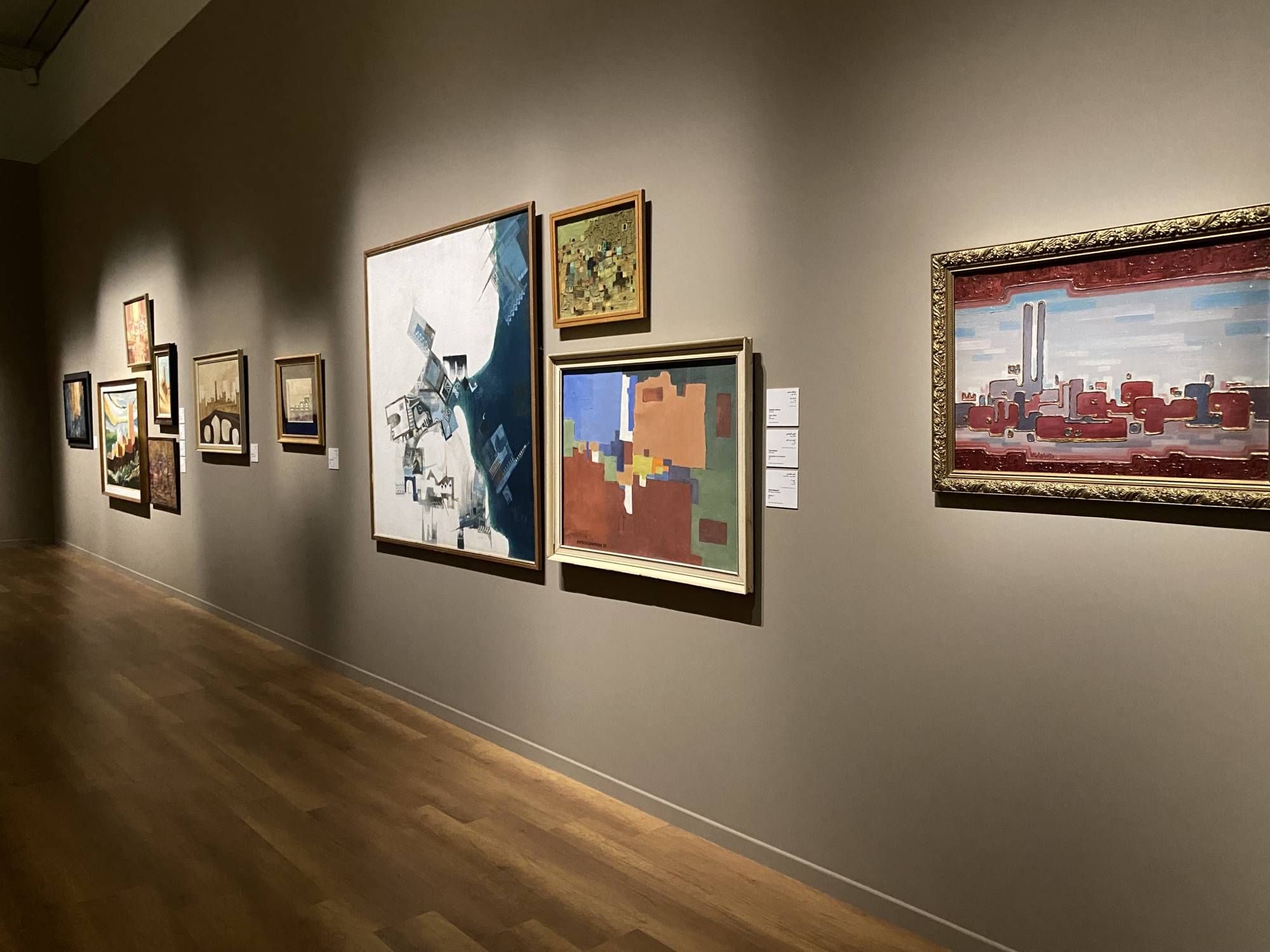 ويتمحور القسم الثاني للمعرض حول تيارات الحداثة والقضايا الموضوعية والتأويلية التي شكلت الإنتاج الفني وينظّم عبر أربعة محاور مترابطة تعكس واقع تلك المرحلة: الطبيعة والمشهد، الحياة الاجتماعية، وجوه وملامح، وأحلام ورموز، وقد شكلت هذه الموضوعات فضاءات عبّر من خلالها الفنانون عن الاستمرارية والتحول، جامِعين بين الإرث الثقافي المتوارث وواقع متغيّر.