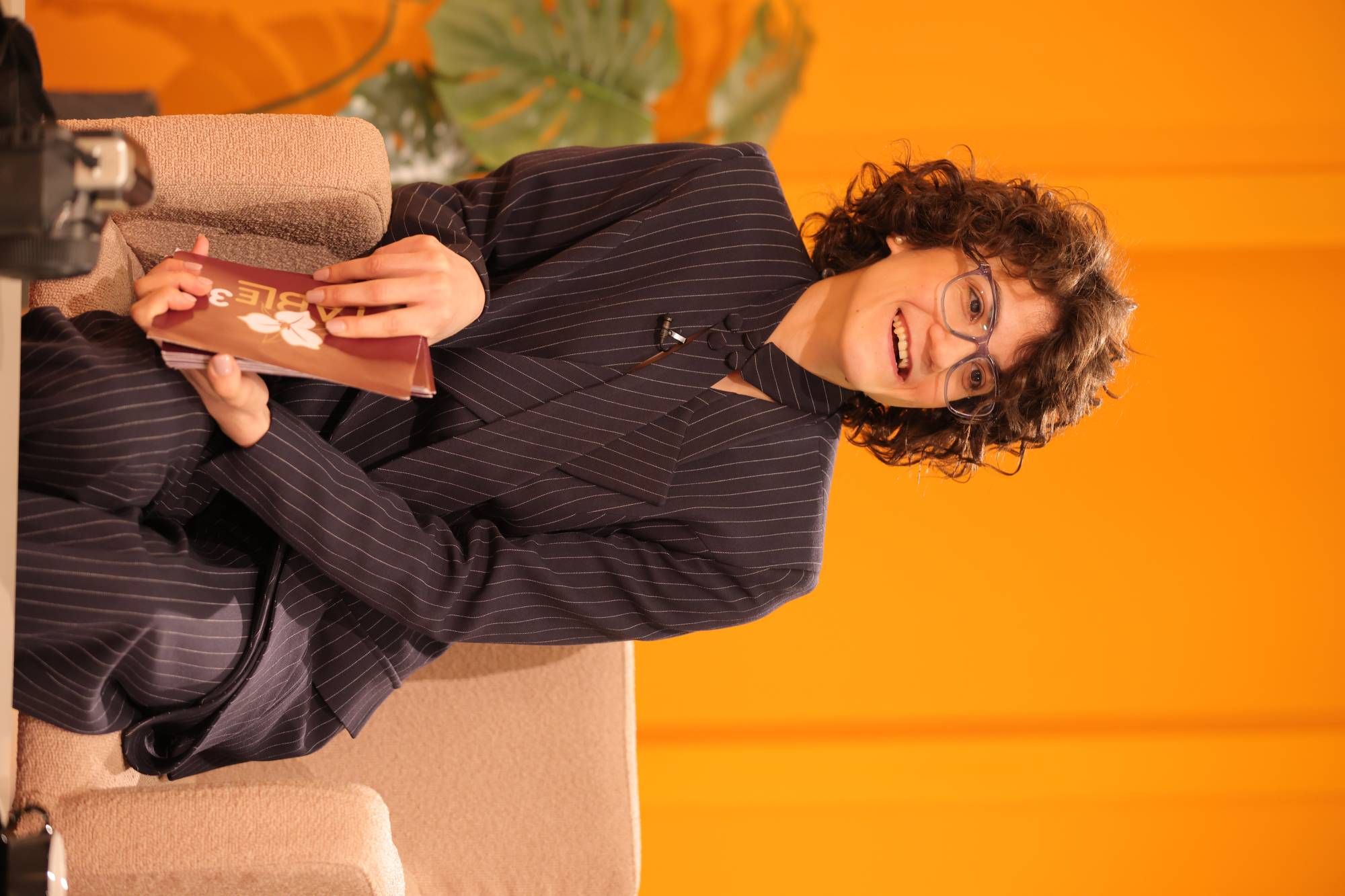 في الاستديو، تتوزَّع المقاعد حول طاولة تتوسَّط المكان، في ترتيب لا يخلو من دلالة. فالفكرة هنا الجلوس على مستوى واحد، حيث لا تفصل المسافة بين السائل والمُجيب بقدر ما تجمعهما. حتى العناصر البصرية تبدو خاضعة لهذه الرؤية، من ألوان دافئة وخطوط هادئة وتفاصيل محدودة توحي بأنّ التركيز يجب أن يبقى مُنصبّاً على الإنسان لا على ما يحيط به.