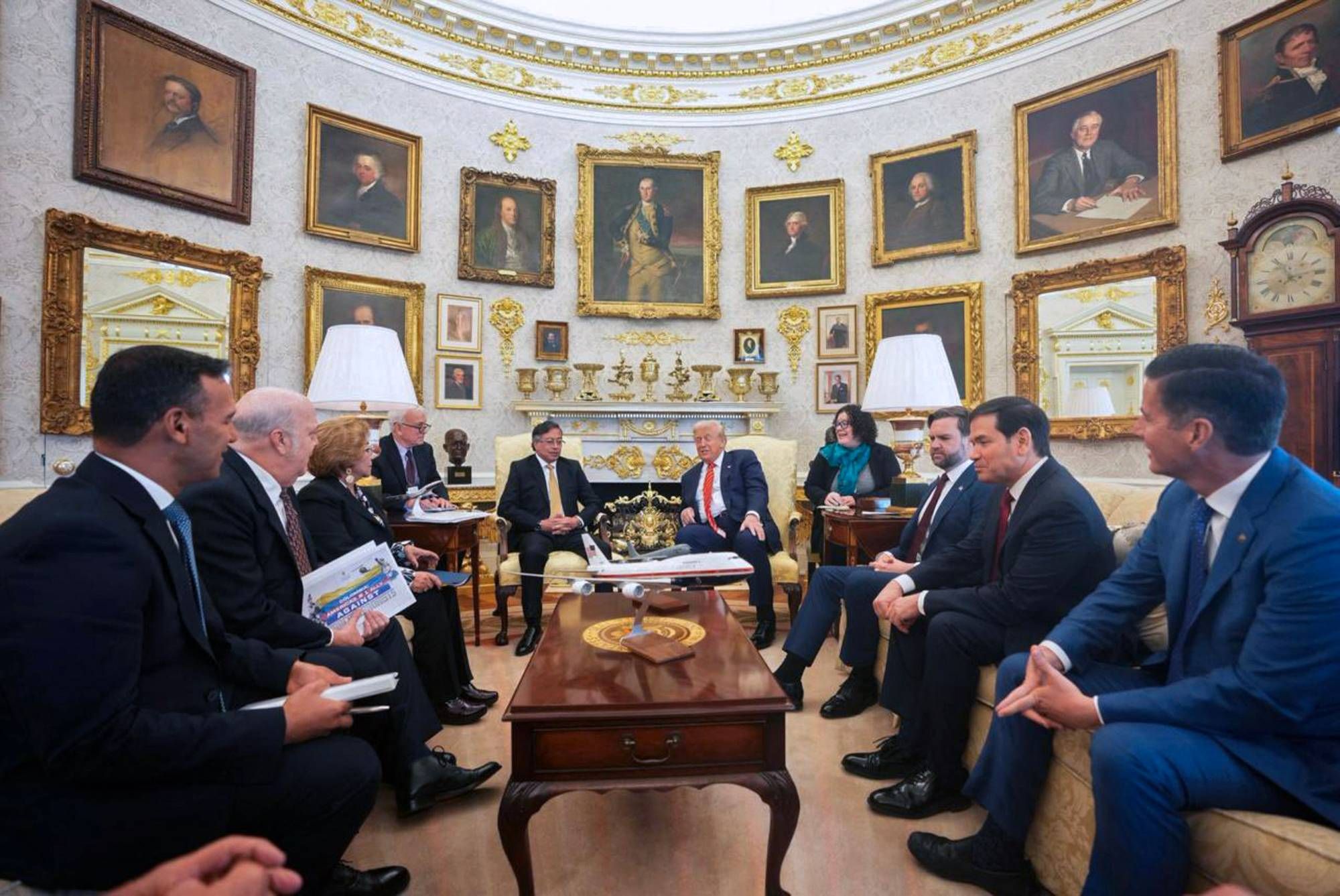 وحضر الاجتماع بين ترمب وبيترو نائب الرئيس الأميركي جاي دي فانس، ووزير الخارجية ماركو روبيو، إضافة الى وزيري الدفاع والخارجية الكولومبيين بيدرو سانشيز وروزا فيلافيشنسيو.