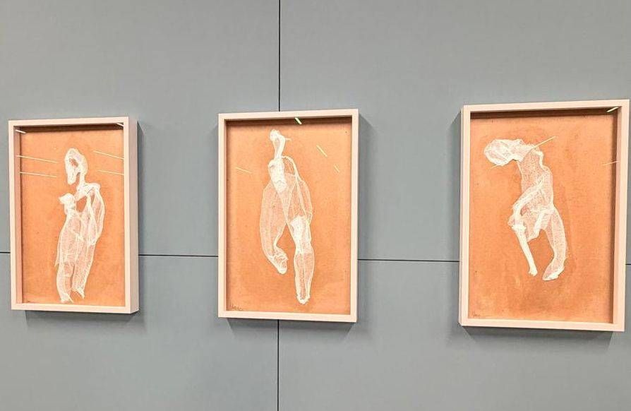 الجروح المبهمةفي القاعة الثالثة من العرض، لا نملك إلا أن نتوقف عند أعمال نابعة من الواقع القريب والمؤلم، فالفنان الفلسطيني تيسير البطنيجي يعرض في عمله «بقايا» مجموعة من اللوحات الزيتية الغائمة الملامح، قد نميز وجهاً لشخص أو هيكلاً ما، خلف تلك الطبقة المبهمة من الضوء والألوان. نفّذ البطنيجي العمل في عام 2024، واعتمد فيه على تجربته خلال أحداث غزة الأخيرة ومحاولة التواصل مع مواطنيه وأقاربه عبر وسائل التواصل الاجتماعي وتطبيقات التواصل، حيث كانت الصور والمقاطع تتواتر ببطء، فتظهر أولاً كأشكال ضبابية مجردة ثم تتضح، نحن هنا أمام اللحظات الفاصلة من الانتظار التي قد تخفي وراءها أهوالاً لا طاقة له بها، لا نرى هنا الصورة الواضحة، بل يتركنا الفنان أمام لحظات الترقب والانتظار لما تحمله الصور من حقيقة.