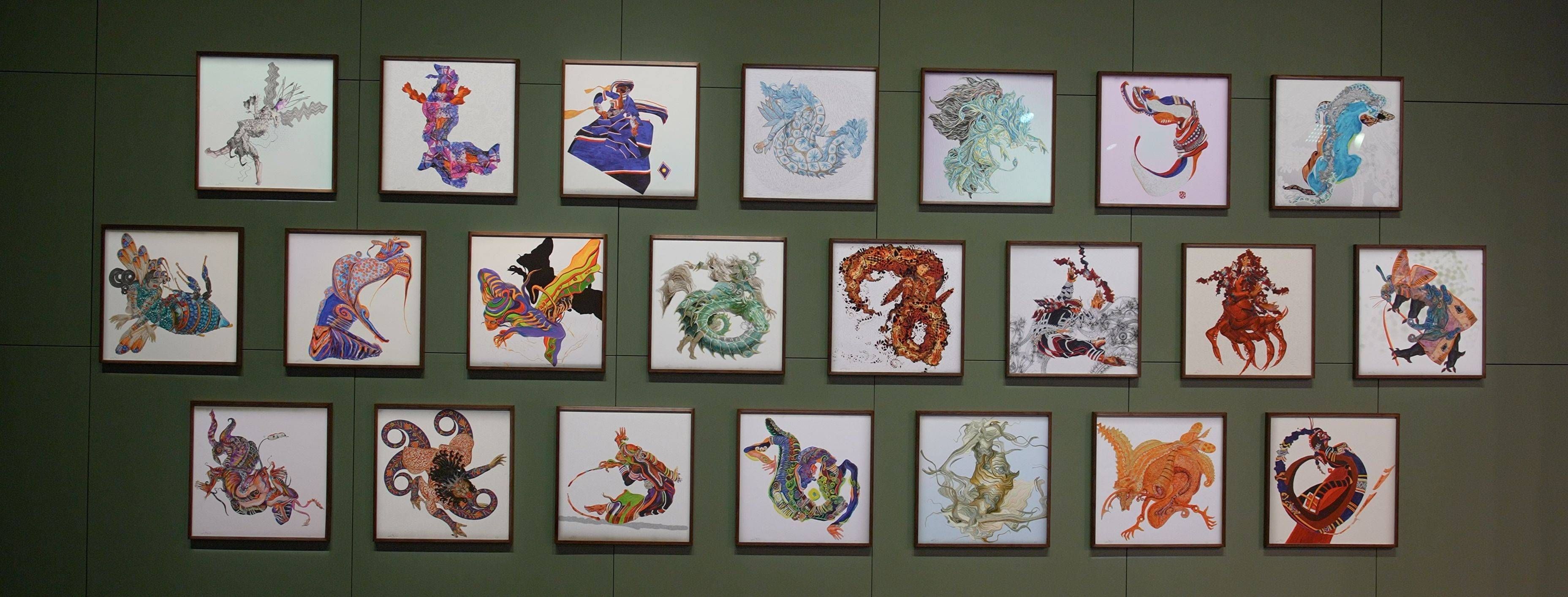 في المعرض، نعود لأعمال الفنانة السعودية شادية عالم، من خلال عمل «تحولات - جنيات لار». نحن أمام مجموعة من الرسومات البديعة لأشكال غرائبية لشخصيات خيالية مستلهمة من التاريخ القديم لشبه الجزيرة العربية على امتداد نهر لار، الوارد ذكره في أطلس بطليموس في القرن الثاني الميلادي، الذي اختفت معالمه. بحسب بيان العرض، العمل هنا يعدّ استعارة لما تحمله النفس البشرية من خيالات صامتة تنتظر أن تبعث بقوة الفن.